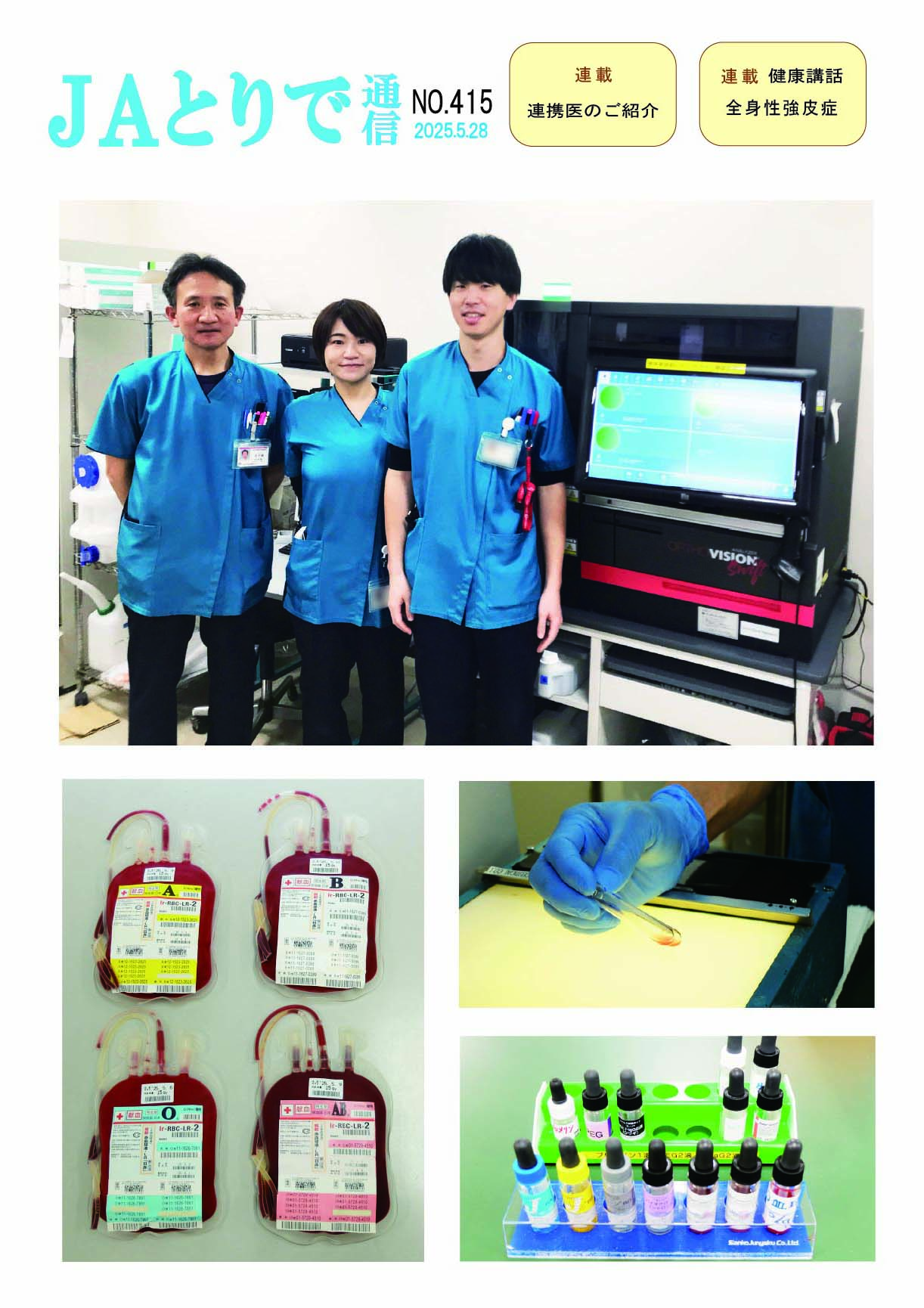 特集 認定輸血検査技師のご紹介 連載 健康講話 全身性強皮症 膠原病・リウマチ内科部長 鈴木文仁 全国厚生連栄養士協議会 全国統一献立 おすすめ郷土料理 新潟県 きりざい 連携医のご紹介 草間クリニック 病院のうごき 歯科衛生士がマタニティークラスで講演 助産師便り 当院でお産した方からのメッセージ お知らせ ・職員の名札のデザイン変更について ・祝日の月曜日の一部を開院します |