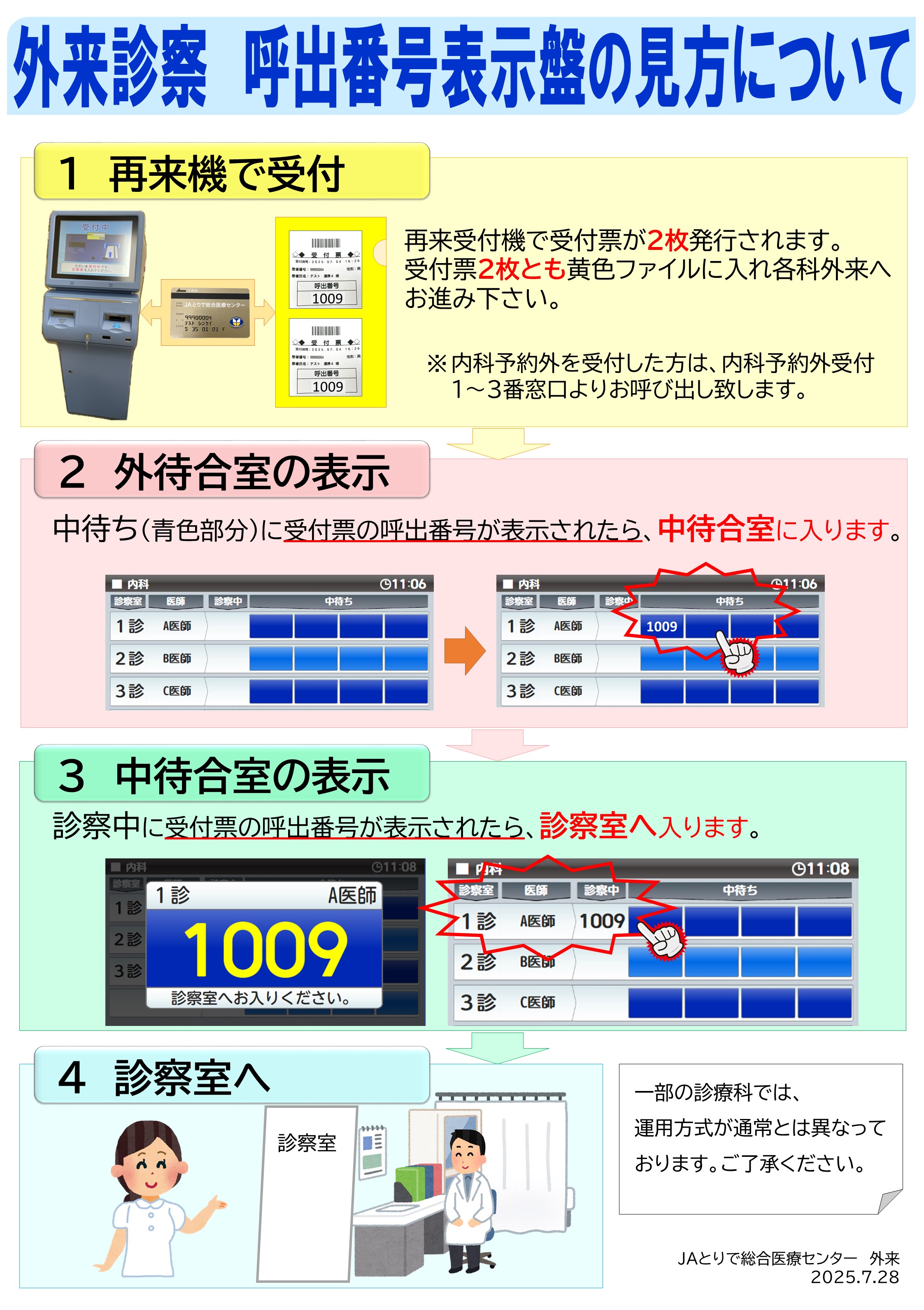外来診察 呼出番号表示盤の見方について - JAとりで総合医療センター|質の高い地域医療・救急医療を提供します