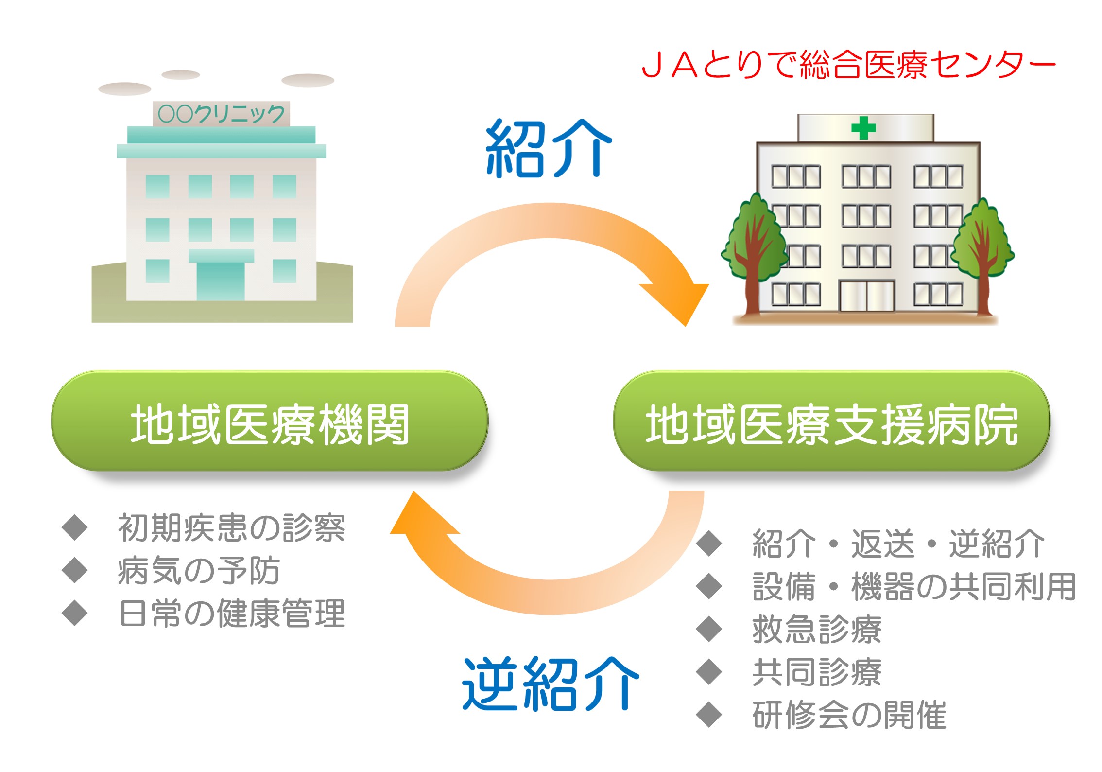 地域の医療機関の医師(開業医など)によって、より詳しい検査や、入院・手術などの専門的な医療が必要と判断された患者さん(紹介患者さん)に対して、適切な医療を提供することを目的として県知事の承認を受けた病院です。