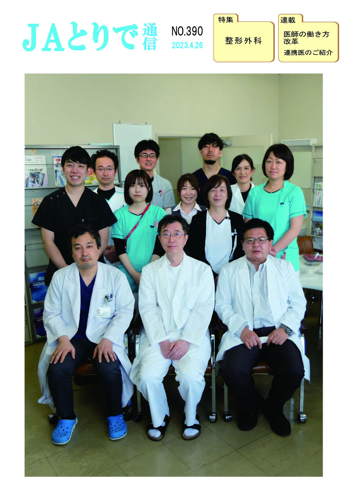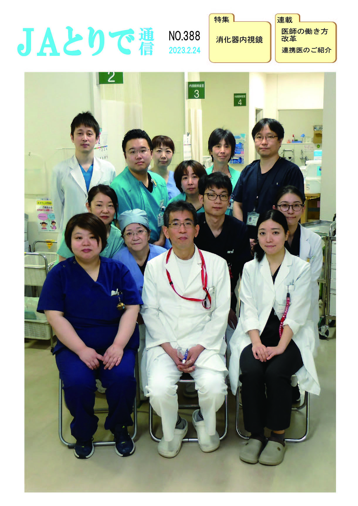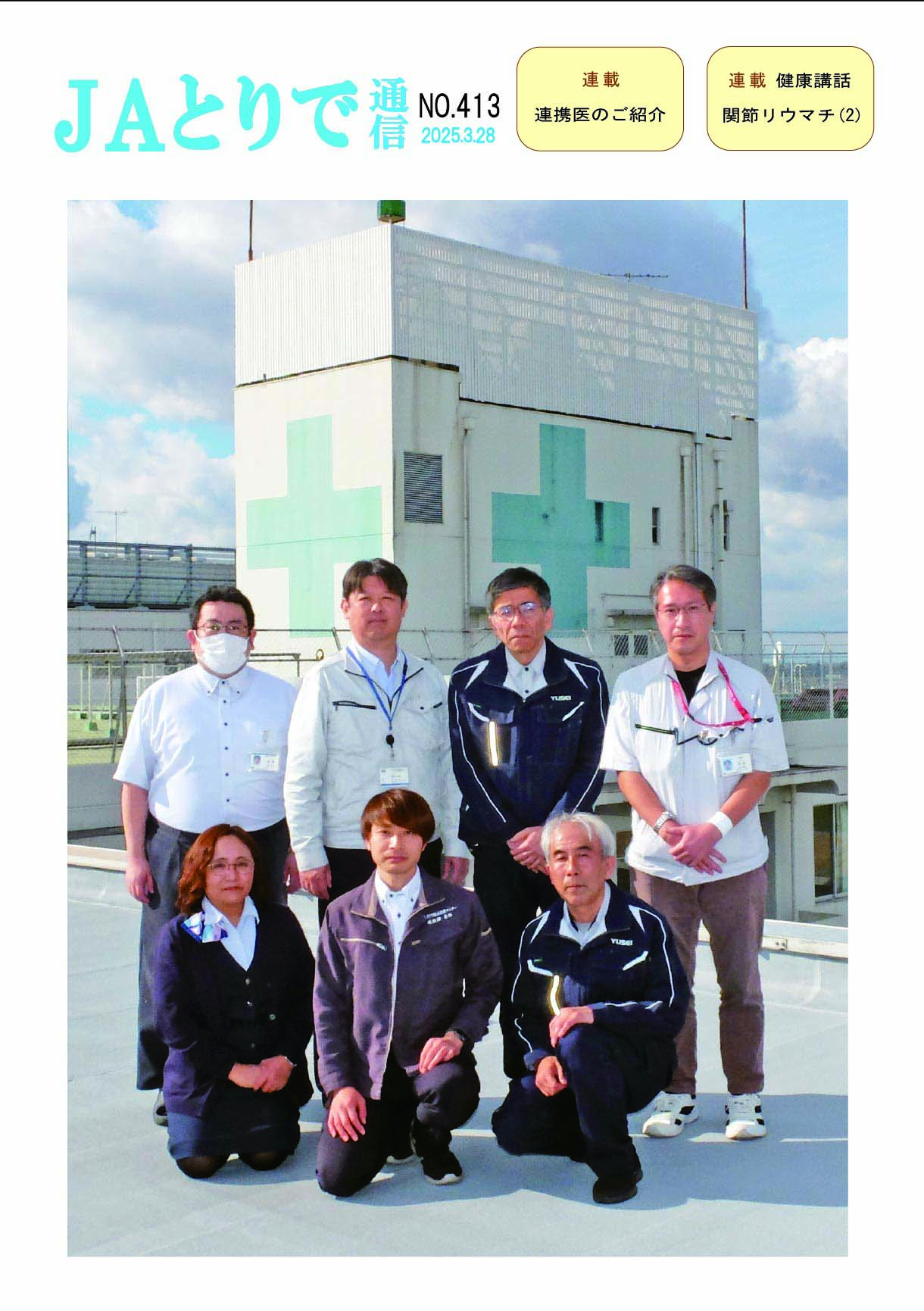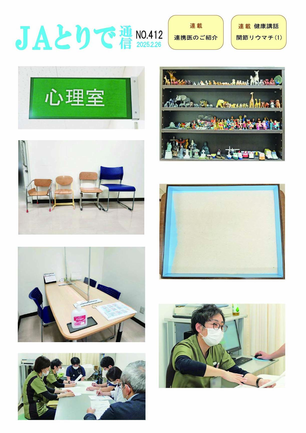 特集 心理職の業務について 健康講話 連載 関節リウマチ(1) 膠原病・リウマチ内科部長 鈴木文仁 連携のご紹介 さくら整形外科クリニック 院長 槌谷宏平 新人のご紹介 4階東病棟 おいしい治療食のレシピ 腎臓病食 JAとりで総合医療センター 栄養部 病院のうごき ・作業療法士の増田さんへ感謝状 ・第44回院内看護研究発表会を開催 ・2024年度看護部ウォードコンペを開催 ・2024年度看護部MVPを5名が受賞 お知らせ ・入院患者さんへの面会を再開しました |