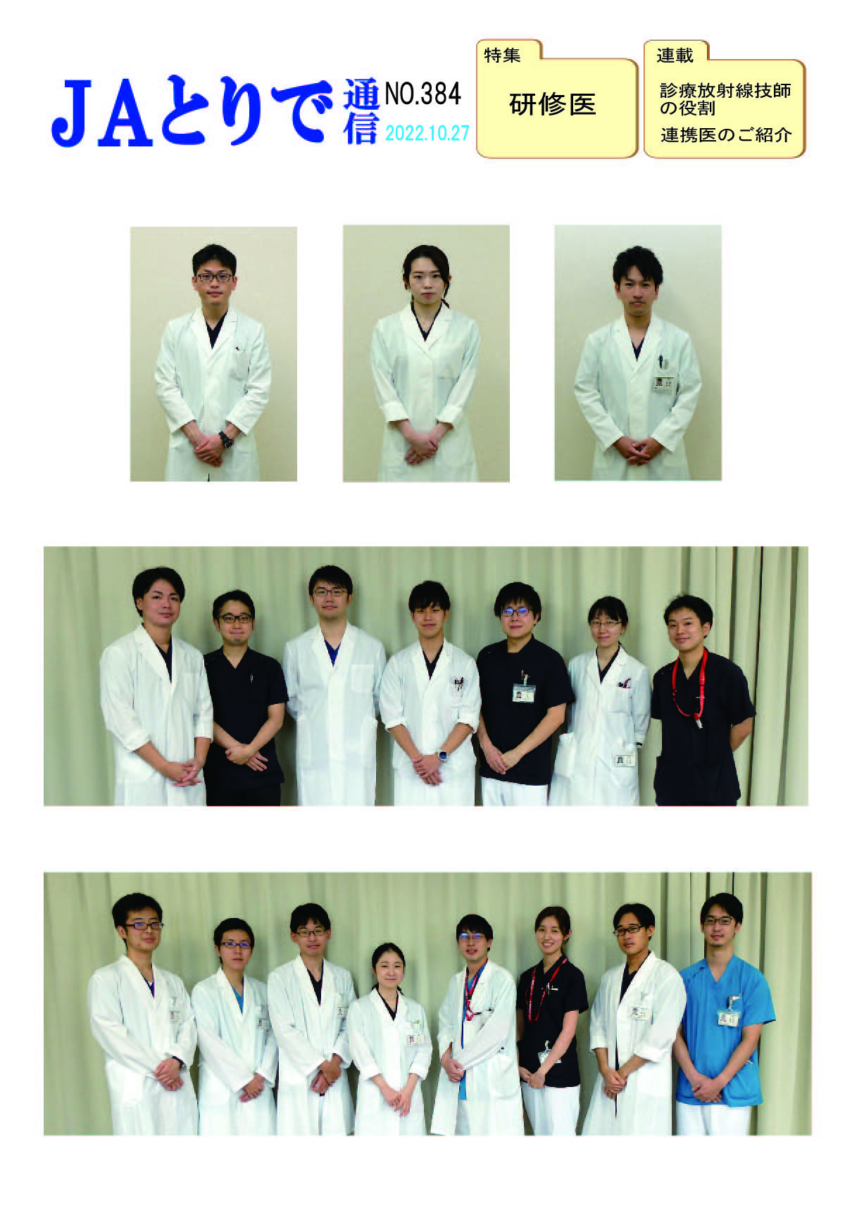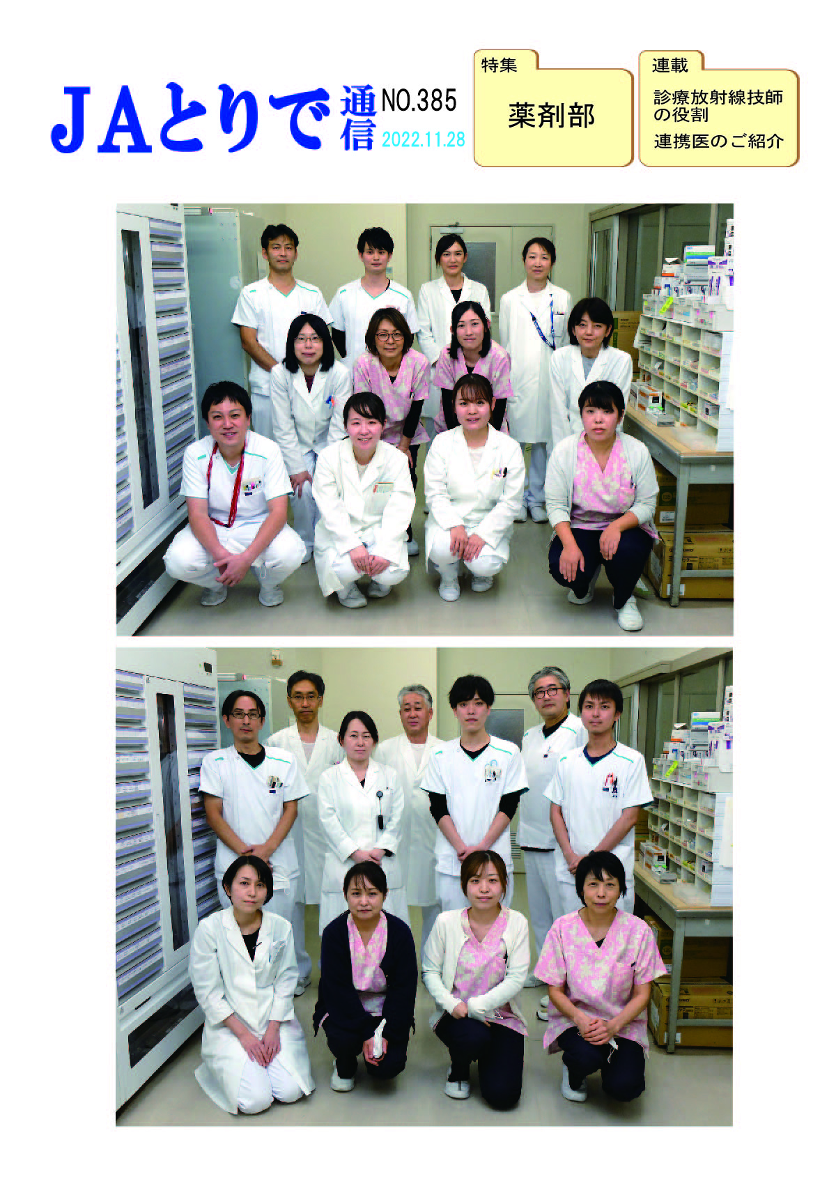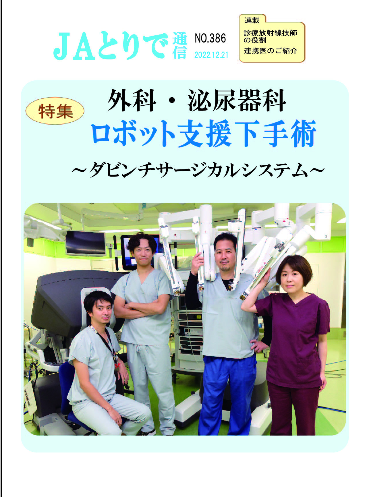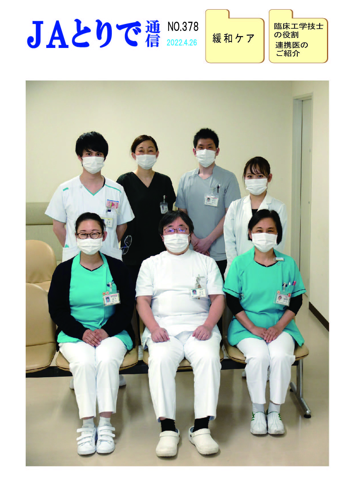 特集 心理職の業務について 健康講話 連載 関節リウマチ(1) 膠原病・リウマチ内科部長 鈴木文仁 連携のご紹介 さくら整形外科クリニック 院長 槌谷宏平 新人のご紹介 4階東病棟 おいしい治療食のレシピ 腎臓病食 JAとりで総合医療センター 栄養部 病院のうごき ・作業療法士の増田さんへ感謝状 ・第44回院内看護研究発表会を開催 ・2024年度看護部ウォードコンペを開催 ・2024年度看護部MVPを5名が受賞 お知らせ ・入院患者さんへの面会を再開しました |