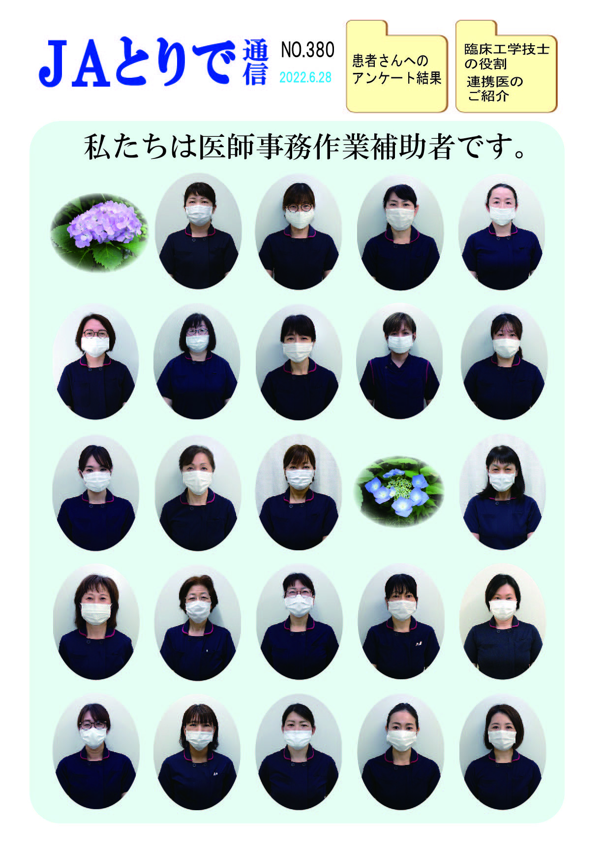 特集 無痛分娩はじめました「安心・安全な除痛を目指して」 連載 老年歯科学講座 航空機能低下症・オーラルフレイル(虚弱口腔) 高齢者(嚥下)歯科科長 井口 寛弘 連携医のご紹介 鈴木内科医院 院長 鈴木博之 新人のご紹介 リハビリテーション部 全国厚生連栄養士協議会 全国統一献立 おすすめ郷土料理 三重県 ほごし寿司 当院でお産した方からのメッセージ 助産師便り ふれあいまつり |