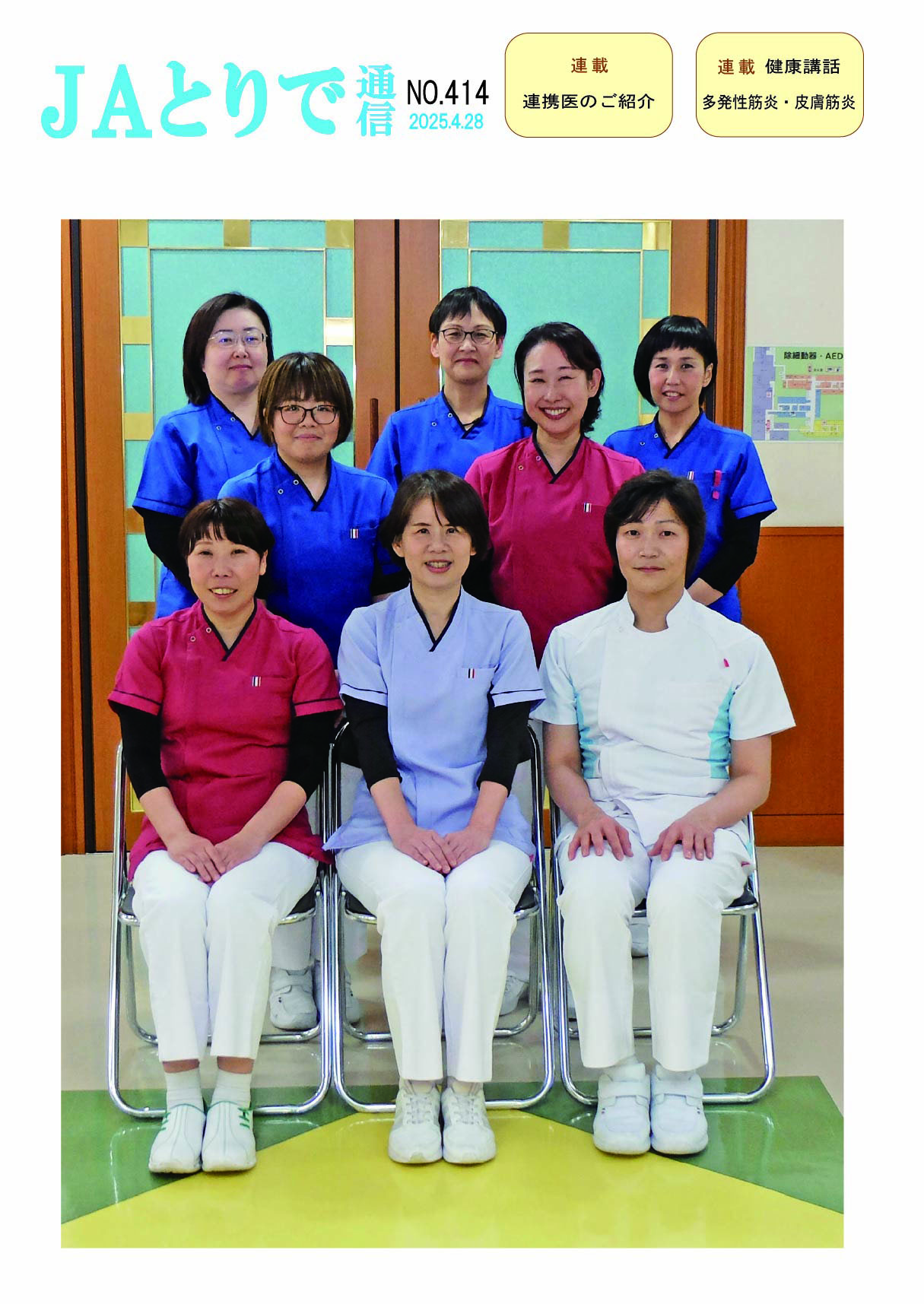 特集 認定看護師のご紹介 連載 健康講話 多発性筋炎・皮膚筋炎 膠原病・リウマチ内科部長 鈴木文仁 全国厚生連栄養士協会 全国統一献立 おすすめ郷土料理 神奈川県サンマーメン 連携医のご紹介 斎藤クリニック 助産師便り 当院でお産した方はらのメッセージ 病院のうごき ・令和7年入会式を挙行~冨滿院長が新採用者76名に辞令を交付~ ・出前講座、昨年度は13回実施 お知らせ ・麻疹疑いの方は来院前に電話を ・祝日の月曜日の一部を開院します |