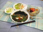 - はるさめは原料がでんぷんなので、たんぱく質を気にしないで分量を調節することができ、エネルギーアップができます。