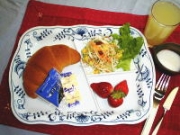 - 低たんぱくパンは甘味があるのでマーガリンとジャムは好みに応じてつけてください。ただし、マーガリンとジャムはエネルギーが高いので他のもので調節して下さい。