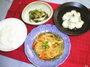 (例:パンとジュース・野菜炒飯とスープ・天ぷら(野菜)うどん) - 材料は薄切りやみじん切りにするとかさが増え、ボリュームがアップします。