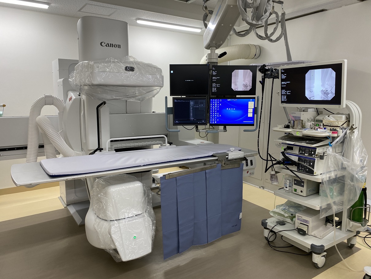 当院のX線TV室では主に消化器・泌尿器を対象に造影剤を用いた検査や消化器・呼吸器系のX線透視を併用した内視鏡検査・治療を行っております。