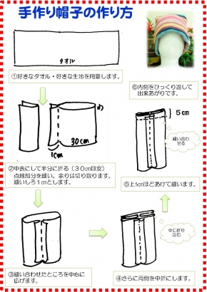 タオルで簡単に帽子が作れます