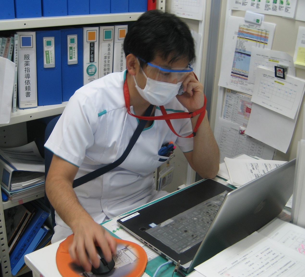 薬の有効性、安全性、相互作用、RMPなどの情報を院内に発信し、医師、看護師からの薬に関する問合せにお答えしています。