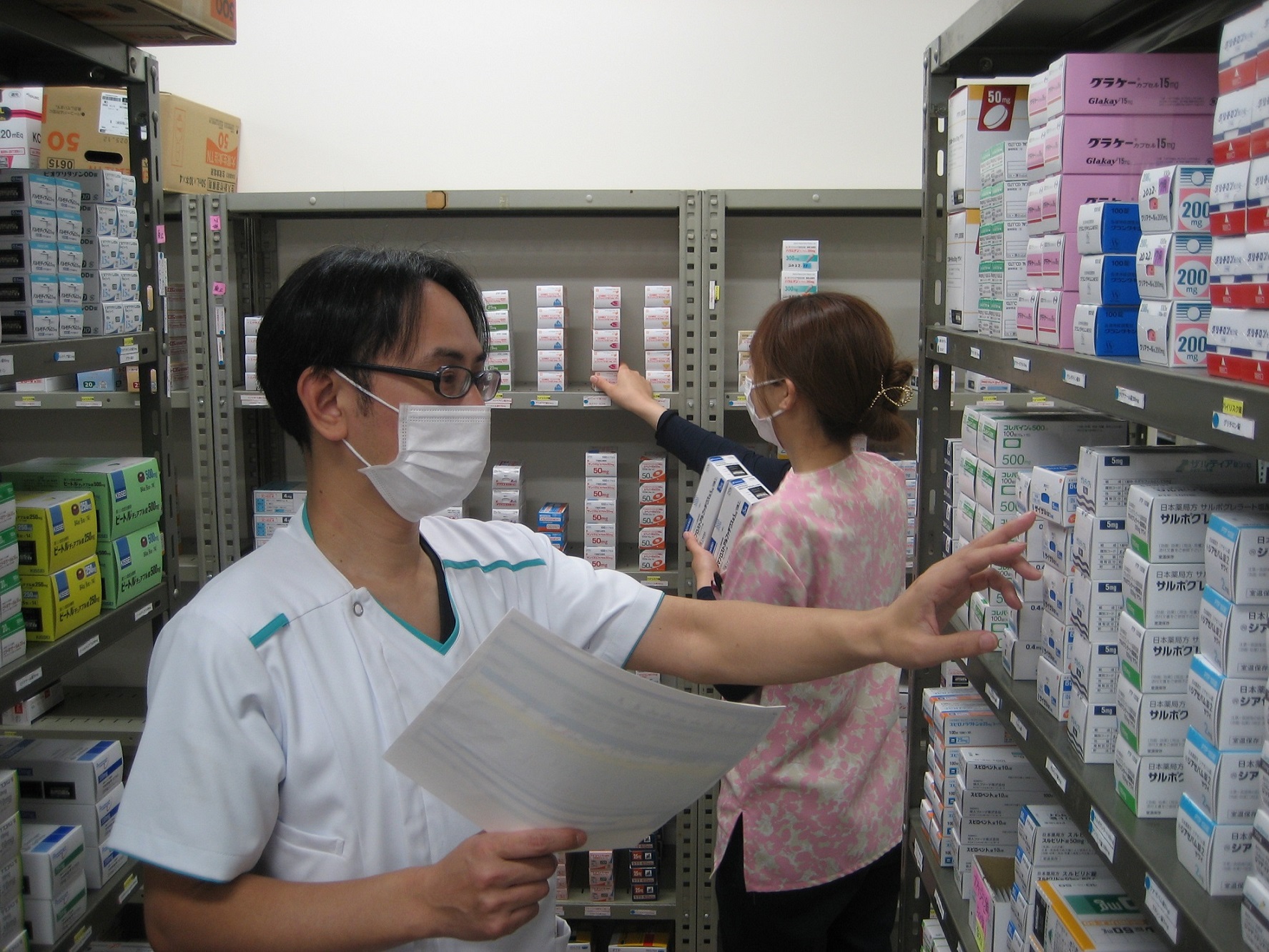 | 当院薬剤部は、薬剤師27名、薬剤助手7名で調剤、服薬指導、病棟薬剤部業務、抗がん剤、TPNの無菌調製、医薬品情報、製剤等を行っています。また、チーム医療の一員としての病棟業務をはじめ、感染、緩和、NST(栄養サポートチーム)、褥瘡、化学療法などの他職種で構成された様々な委員会にも所属しています。 個々の患者さんに、最適で安心かつ安全に薬物療法が行えるように、医薬品の適正使用を推進し、専門的知識の習得と技術向上に努めています |