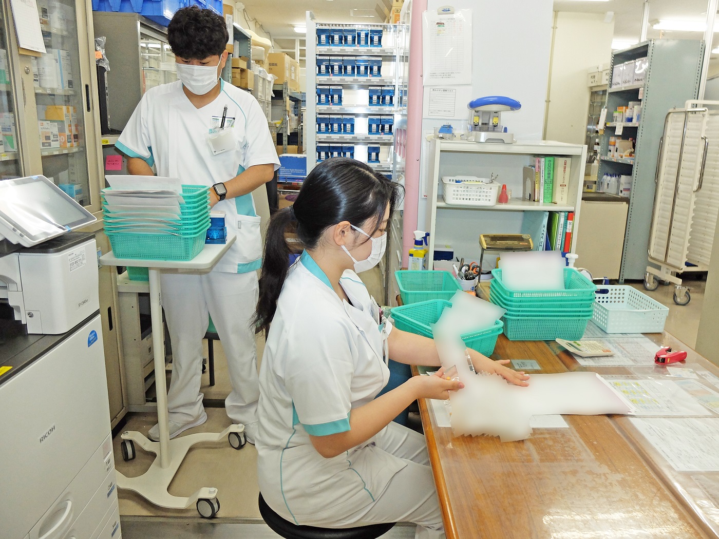 薬品管理室では、病院で使用する医薬品の発注と在庫管理を行っています。
