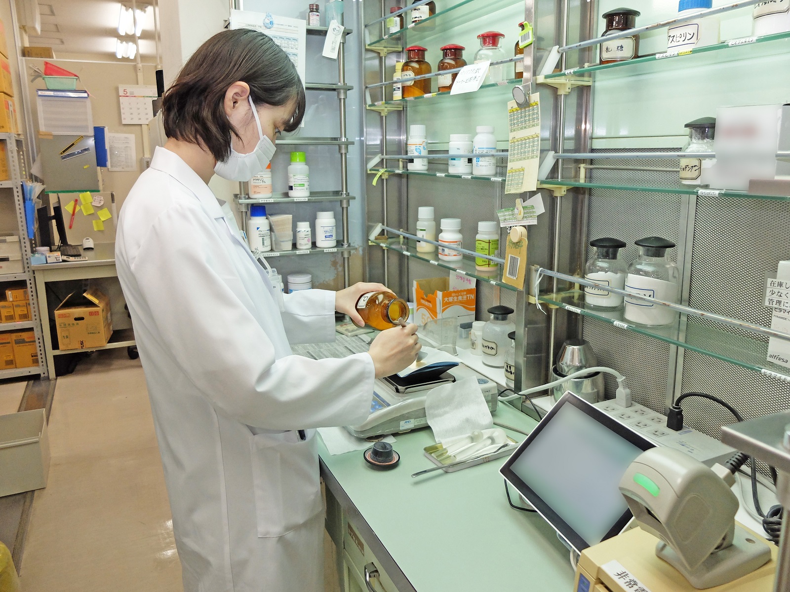 処方せんの内容について、投与量・飲み方・飲み合わせ・副作用などをチェックし、患者さん一人一人に適した形で内服薬や外用薬の調剤を行います。患者さんにとって、より安全で効果的な薬物治療のお手伝いを目指しています。