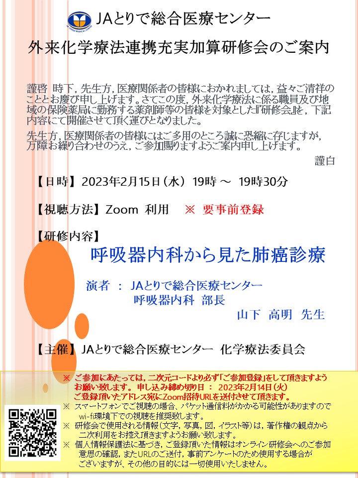 【主催】 JAとりで総合医療センター 化学療法委員会