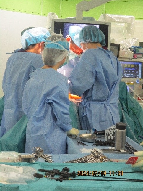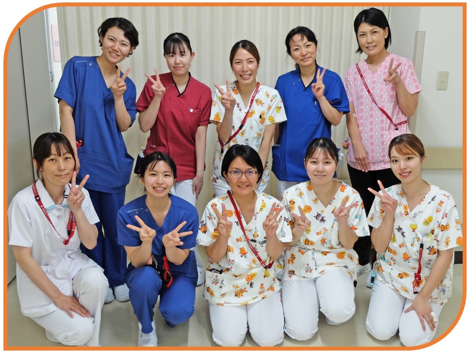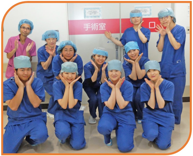 | 手術室では11診療科(年間約2900件)の手術に対応しています。手術支援ロボットも導入され、より低侵襲かつ高度な手術が出来るようになりました。 手術を受けられる患者さんは、生後数か月からご年配の方までと幅広く、また術式も数多くあるため、多くの知識と技術が求められます。そのため、安心・安全に手術が行えるよう、先輩・後輩関係なく、お互いに声を掛け合い・助け合いながら働いています。 また手術室には、医師・看護師だけではなく臨床工学技士も常駐していますので、機器管理やスコピストとして手術に協力し、チーム医療を提供しています。 |