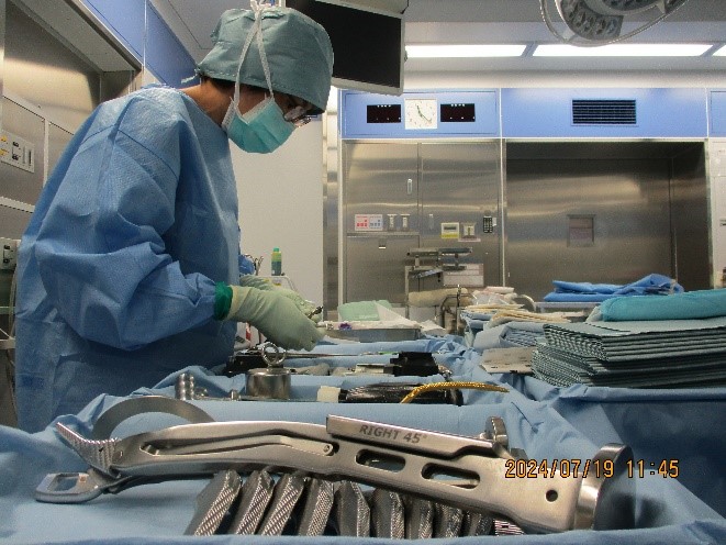 手術前に手術で使用する鉗子等の 器械を準備しています |