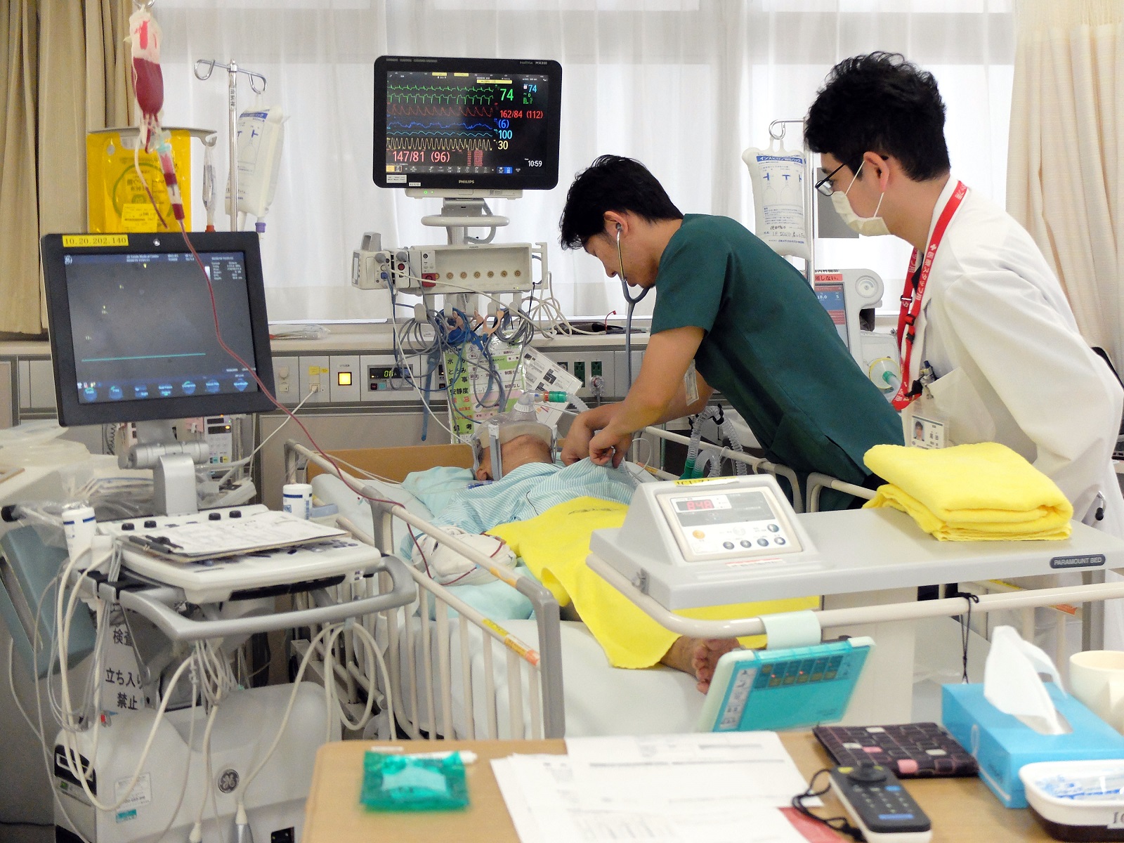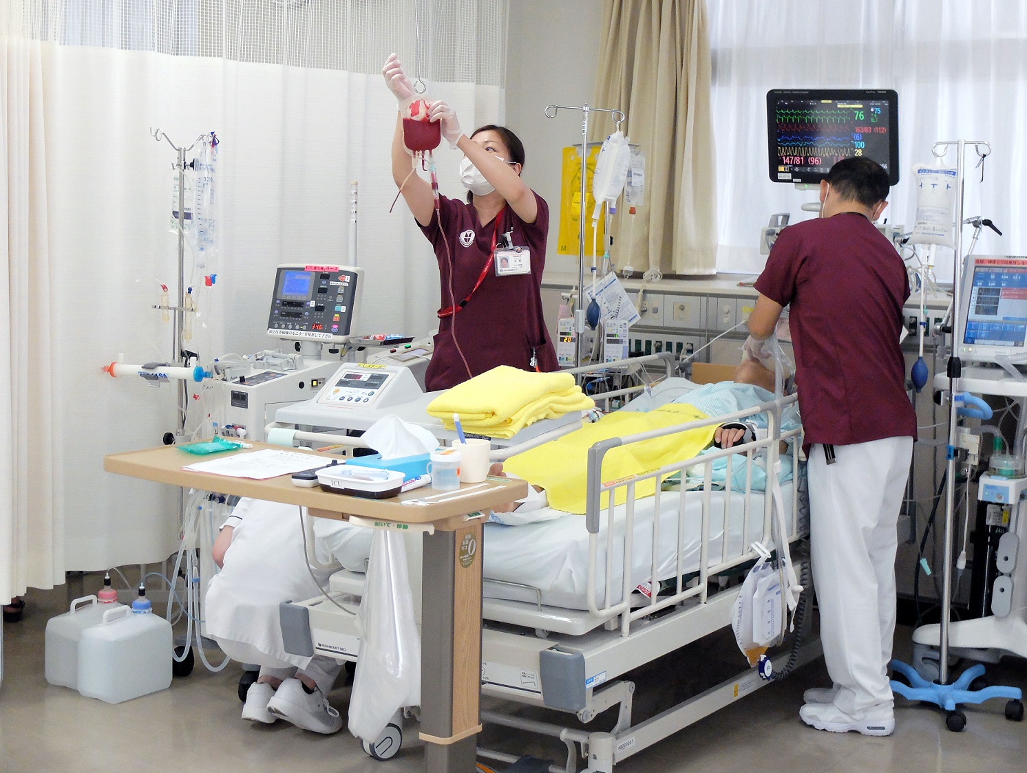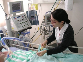 重症患者さんの機器管理および日常生活の援助を24時間行っています。 |