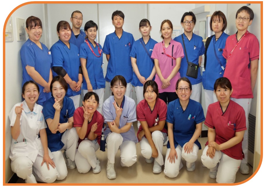 5南病棟は、整形外科、耳鼻科、口腔外科の外科系の混合病棟です。医師は整形外科医師6名、耳鼻科医師3名、口腔外科医師1名、高齢者歯科医師1名。他に、看護師24名、ナーシングアシスタント3名、介護福祉士1名とリハビリスタッフと共に、患者さんの治療・回復に向けてのサポートをチームで取り組んでいます。 |