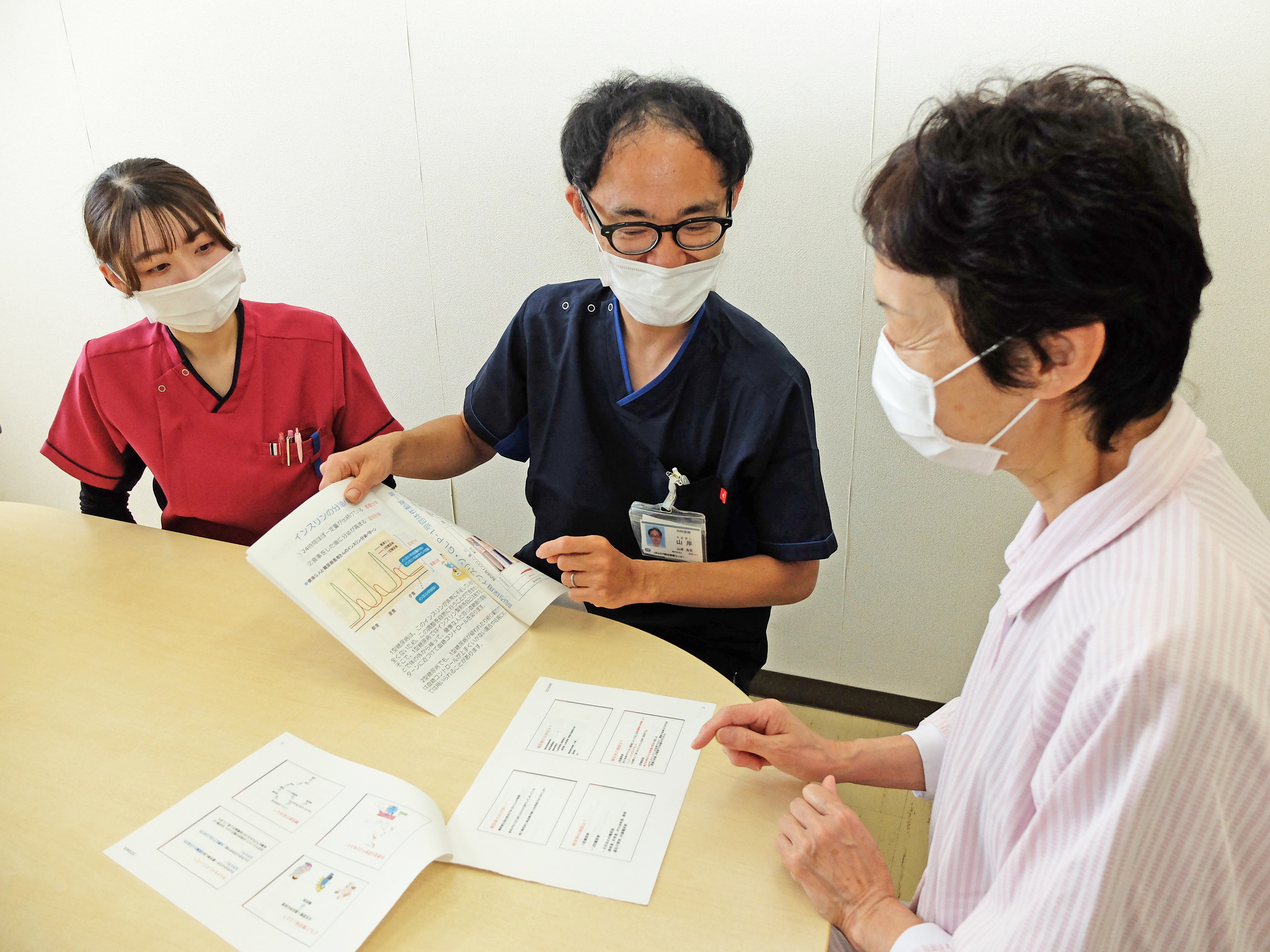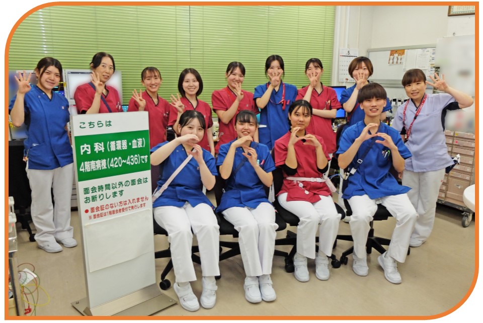 4東病棟は消化器内科・内分泌代謝内科の病棟です。 消化器内科は、食道・胃・十二指腸・小腸・大腸の消化管と、肝臓・胆嚢・膵臓を主とした消化器疾患の診断と治療を行っています。吐血・下血などに対する内視鏡的止血術や、早期胃癌・早期大腸癌に対するESD(内視鏡的粘膜下層剥離術)、急性膵炎や胆嚢炎などの炎症疾患、抗がん剤治療など多岐にわたります。内分泌代謝内科は、主に糖尿病などの代謝疾患です。糖尿病の血糖コントロール目的での入院や、教育入院の患者さんがセルフケアを確立し継続できるように、関連する専門職種で連携して支援しています。 |